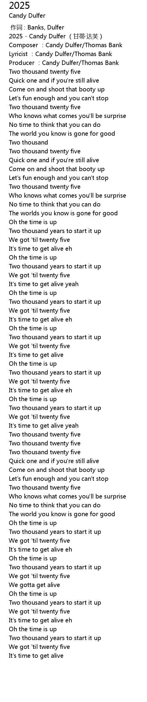 | [00:00.267] | 2025 - Candy Dulfer (甘蒂·达芙) |