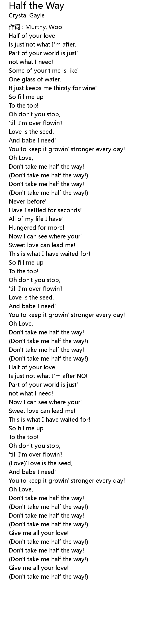 | (Don't take me half the way!) | |