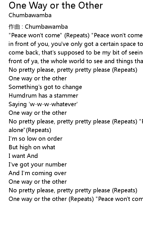 | One way or the other (Repeats) "Peace won't come by words alone"(Repeats) |