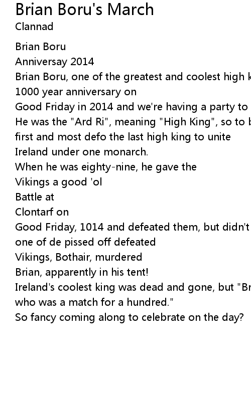 Ireland's coolest king was dead and gone, but "Brian was the last man in Erin who was a match for a hundred." |