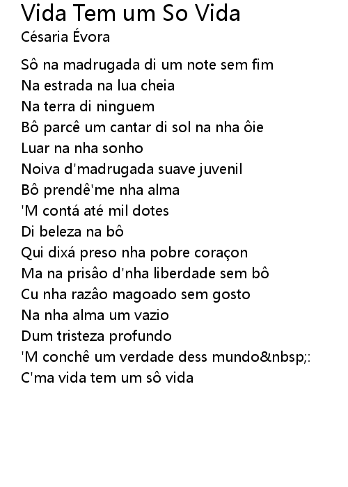 | Song | Vida Tem um So Vida |