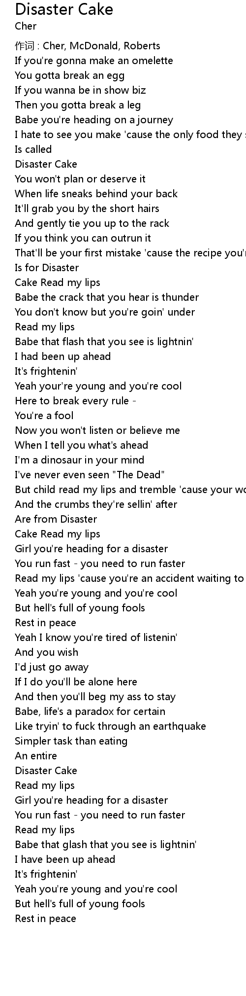 | Read my lips ' cause you' re an accident waiting to happen | |