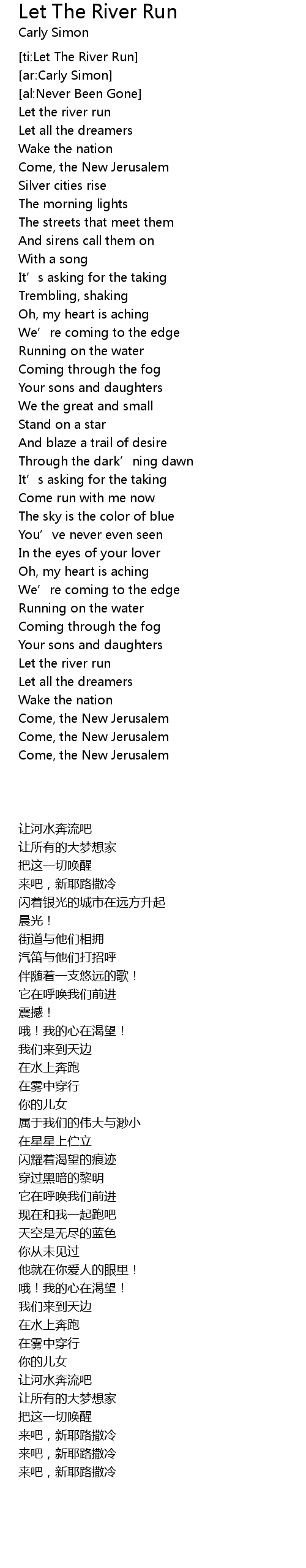 | [ti:Let The River Run] | |