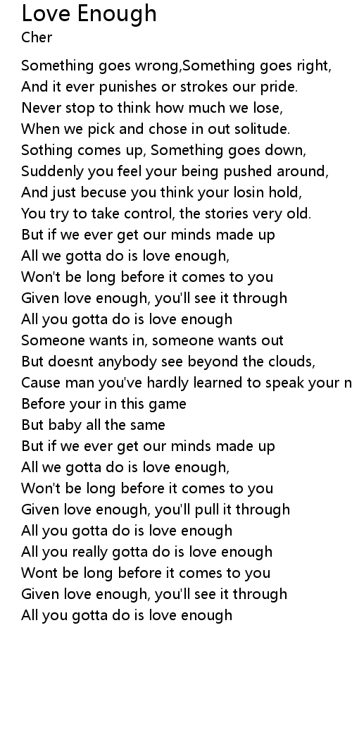 | All you really gotta do is love enough | |
