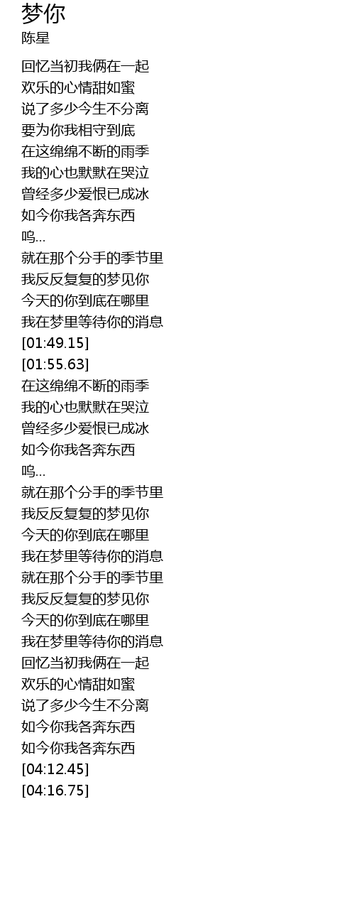 | [01:41.82] | 我在梦里等待你的消息 |