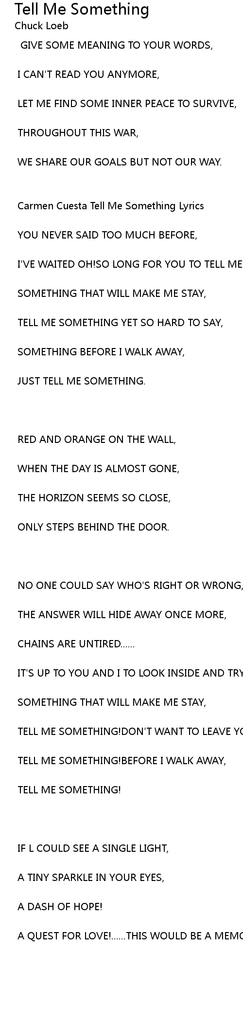 Carmen Cuesta Tell Me Something Lyrics |