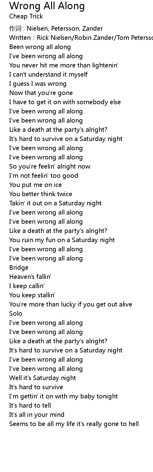 | Song | Wrong All Along |