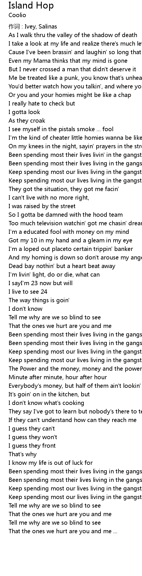 | Been spending most their lives livin' in the gangsta's paradise | |