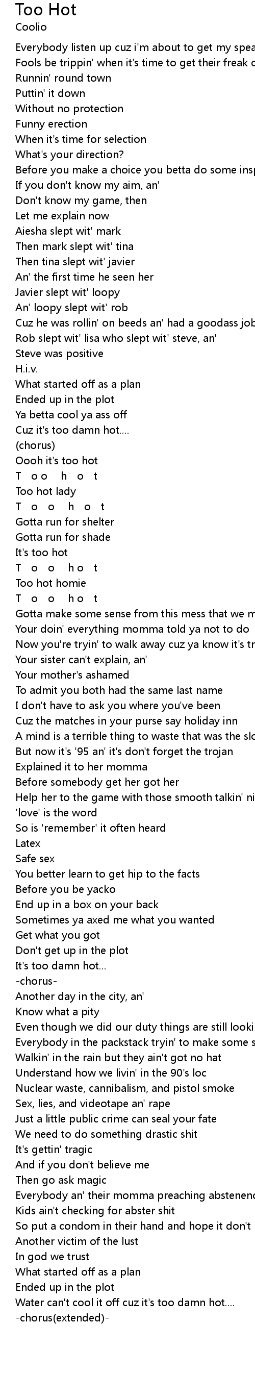 | Song | Too Hot |