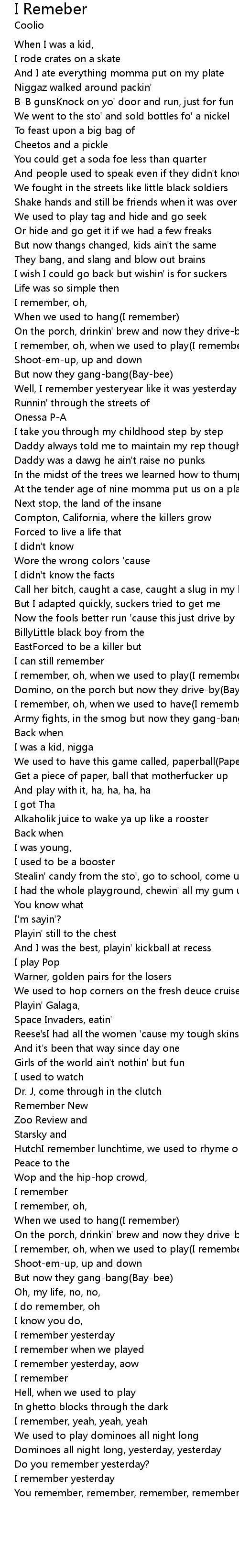 I remember, oh, when we used to play(I remember) |