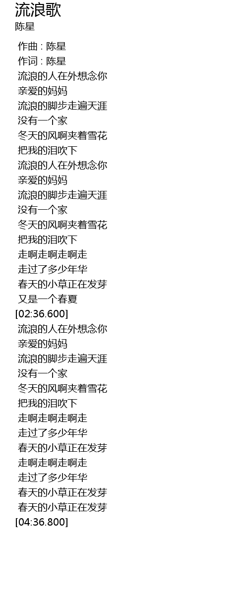 | [02:54.200] | 流浪的人在外想念你 |