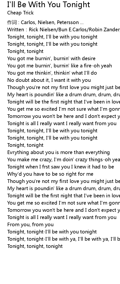 | Tonight, tonightI' ll be with you tonight | |