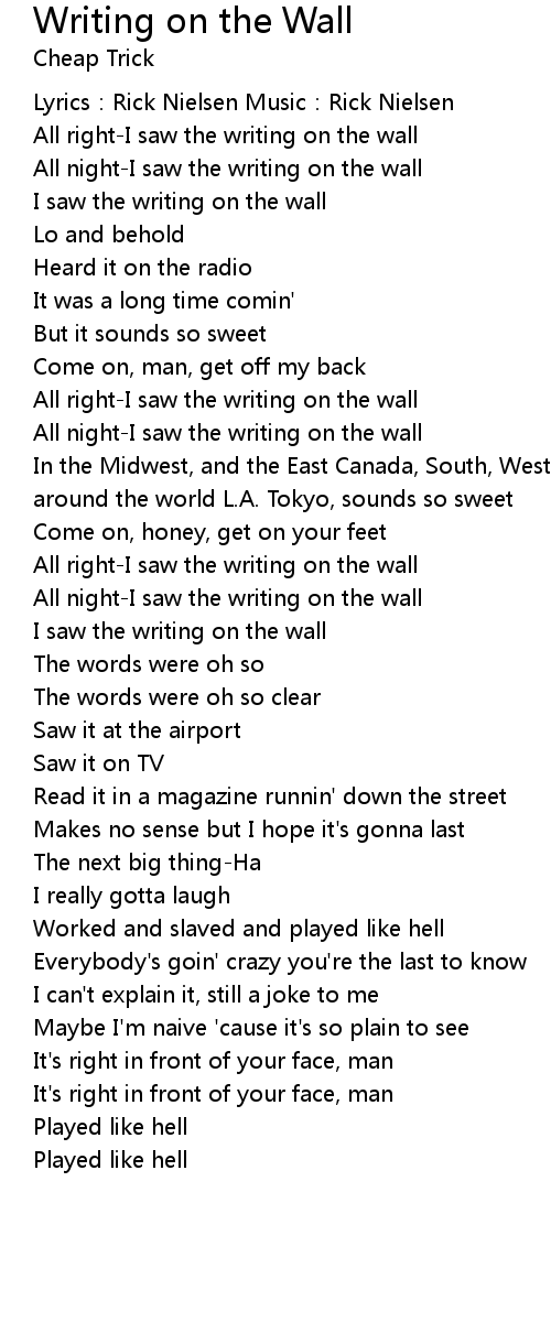 | All night-I saw the writing on the wall | |