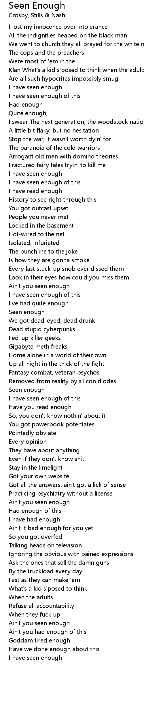 Ain't you seen enough |