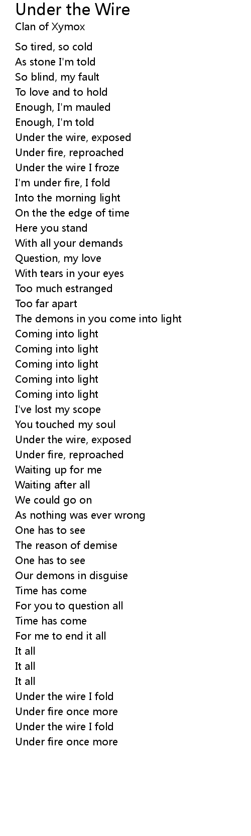 | Under the wire I fold | |