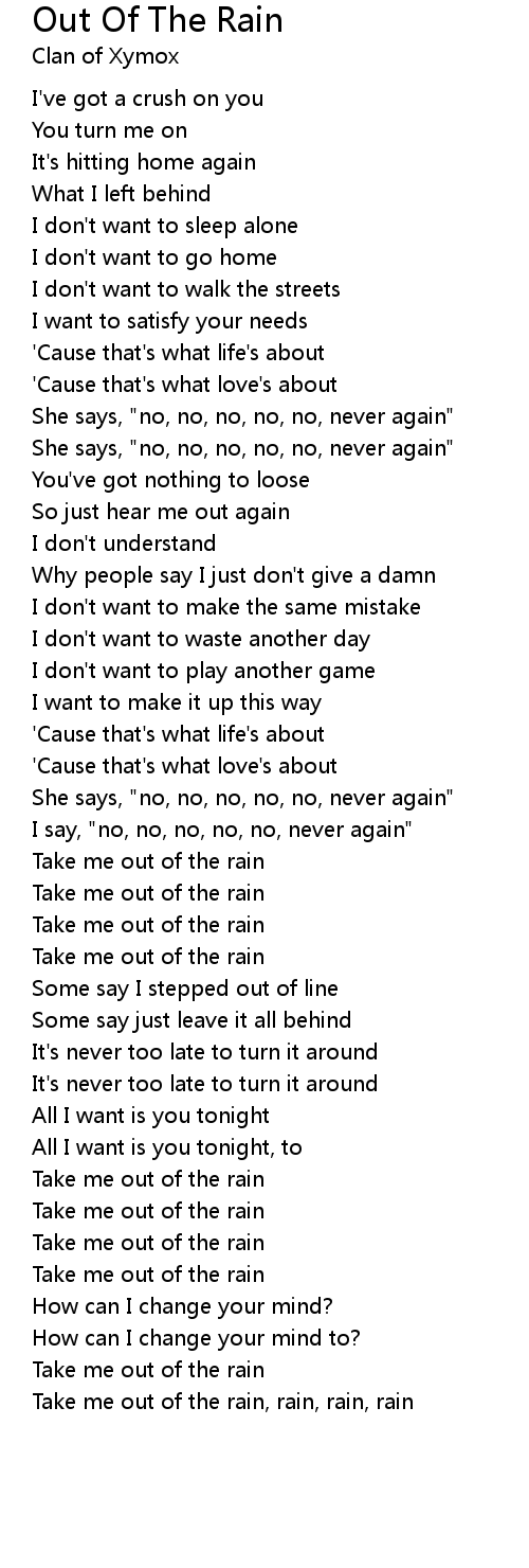 Take me out of the rain, rain, rain, rain |