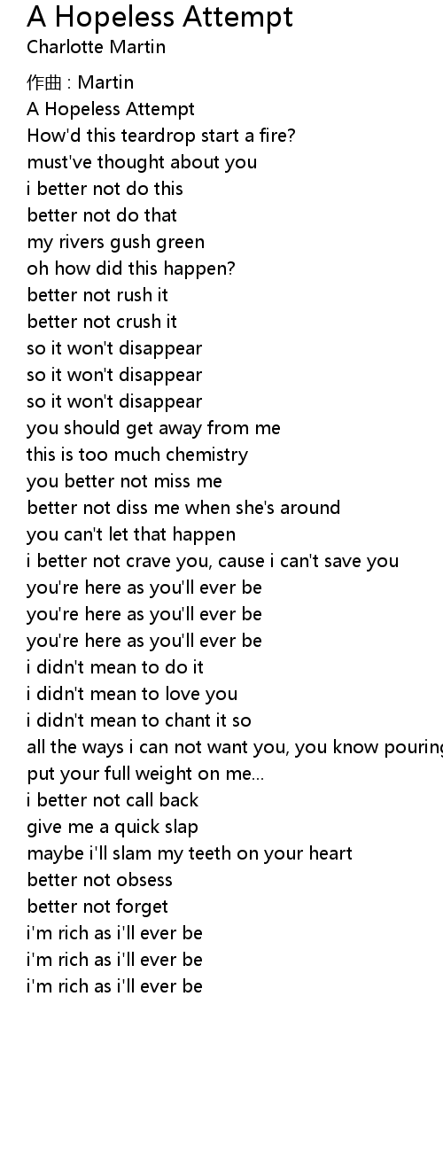 | all the ways i can not want you, you know pouring salt back in the wound | |