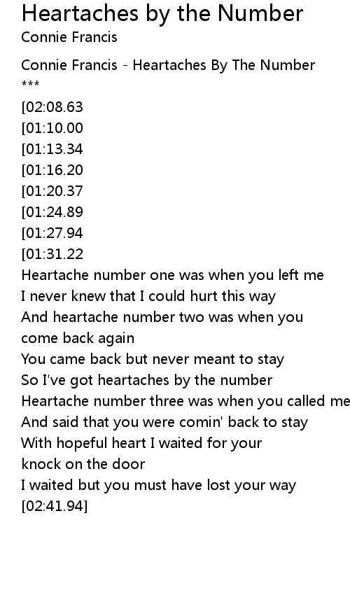 Connie Francis - Heartaches By The Number |