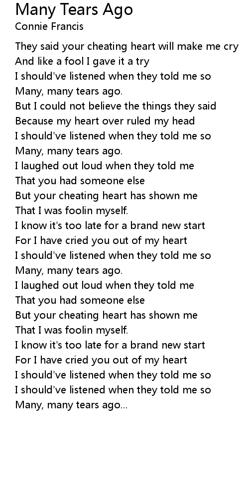 They said your cheating heart will make me cry |