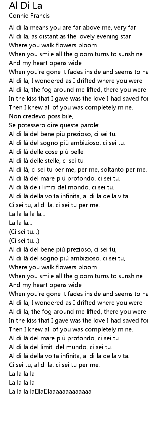 | Al di la, ci sei tu per me, per me, soltanto per me. | |