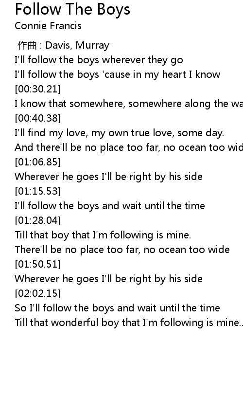 | [00:09.51] | I'll follow the boys wherever they go |