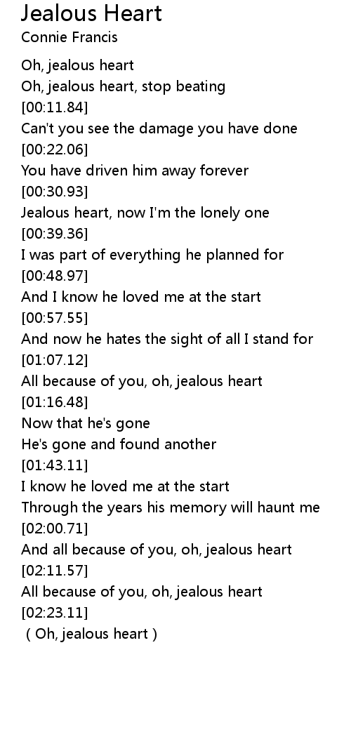 | [02:23.99] | Oh, jealous heart |