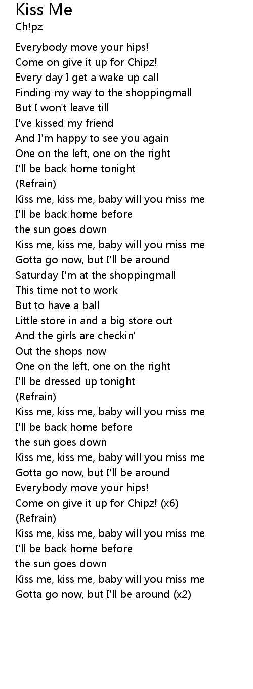 Kiss me, kiss me, baby will you miss me |