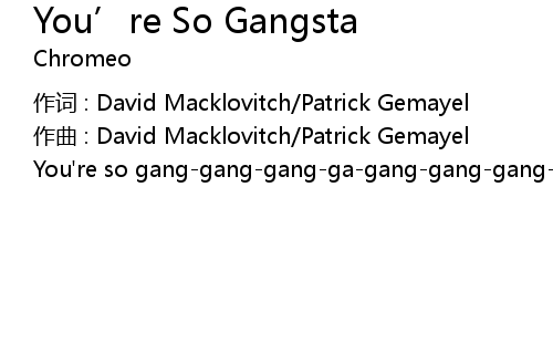 | Song | You’re So Gangsta |