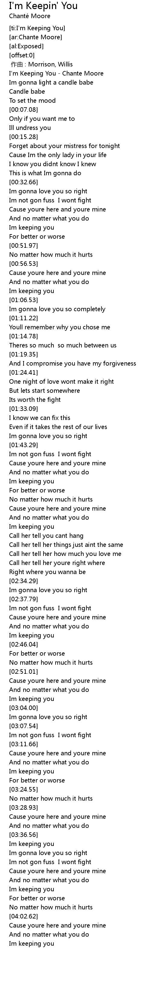 | [00:00.51] | I'm Keeping You - Chante Moore |