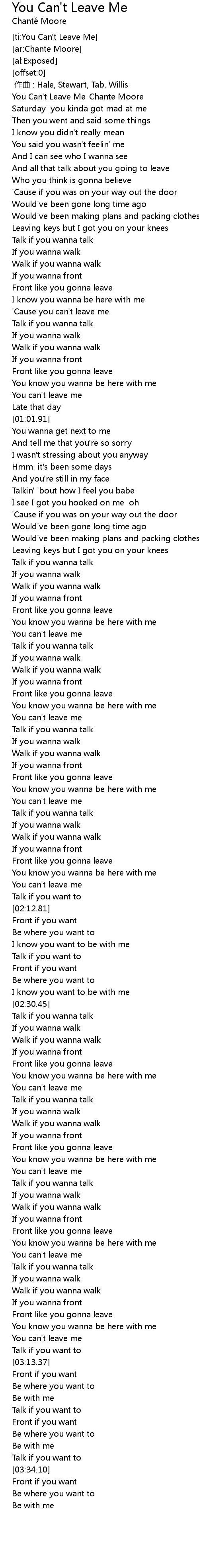 | [00:00.72] | You Can' t Leave MeChante Moore |