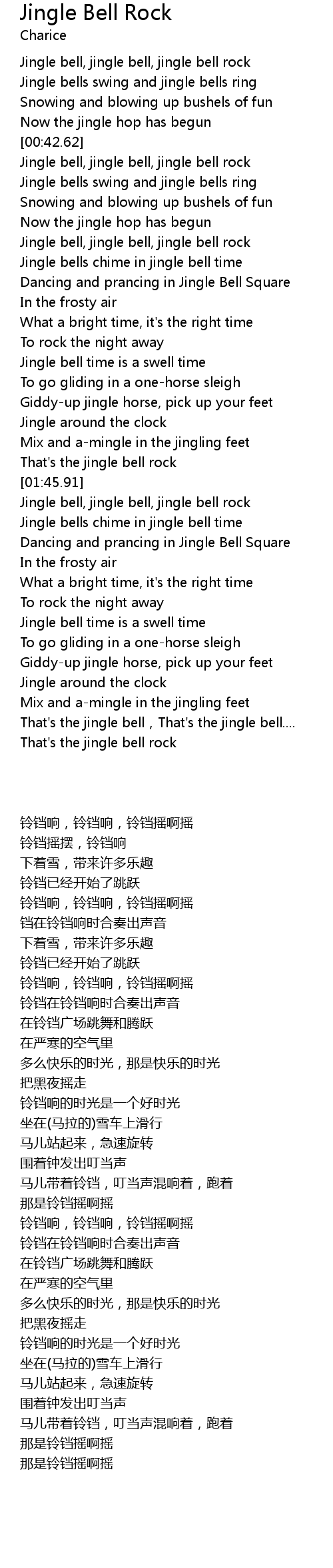 | [01:02.19] | Jingle bell, jingle bell, jingle bell rock |