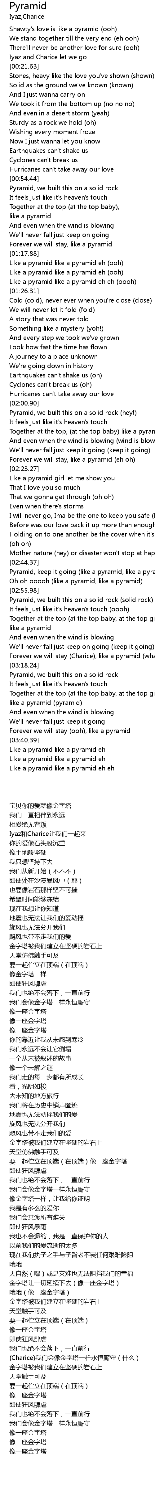 | [03:35.66] | Forever we will stay (ooh), like a pyramid |