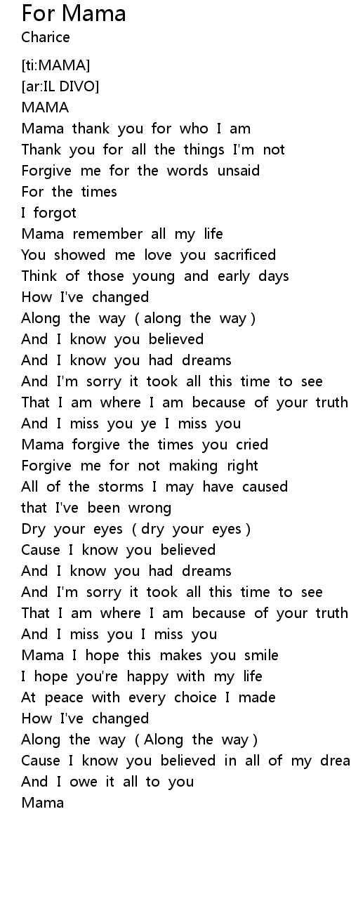 | [00:11.310] | Mama thank you for who I am |