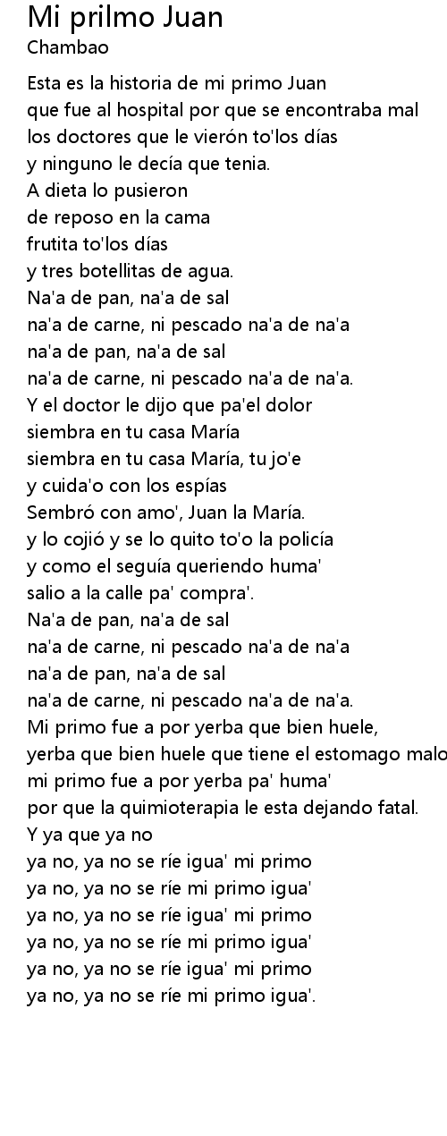 | ya no, ya no se rí e igua' mi primo | |