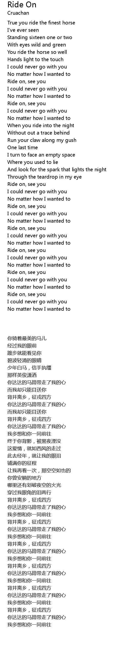 | [00:42.30] | You ride the horse so well |