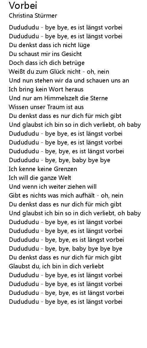 | Dudududu bye bye, es ist l ngst vorbei |