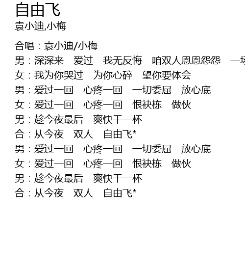 | 合:从今夜 双人 自由飞* | |