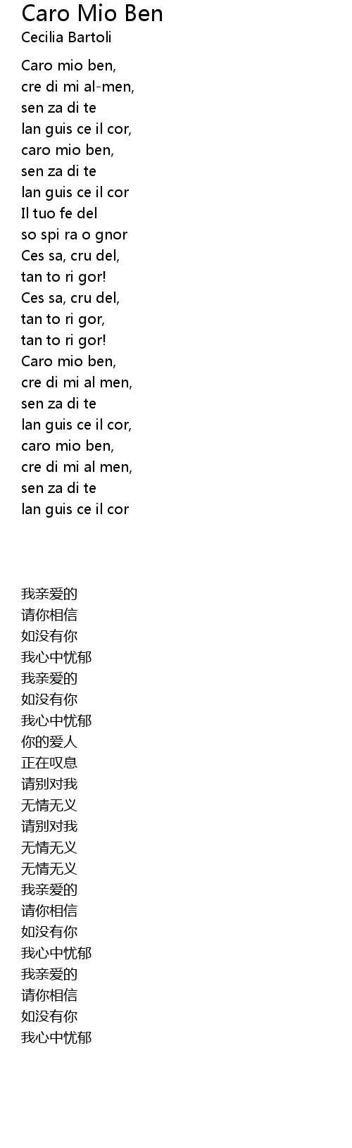 Caro mio ben, |