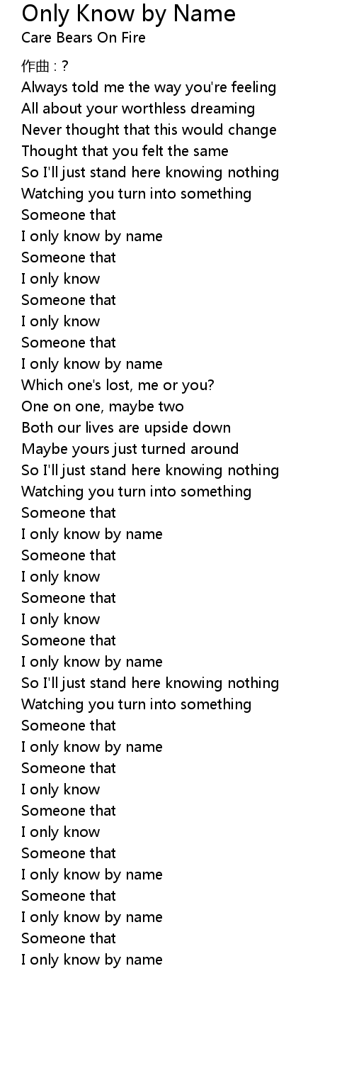| Song | Only Know by Name |