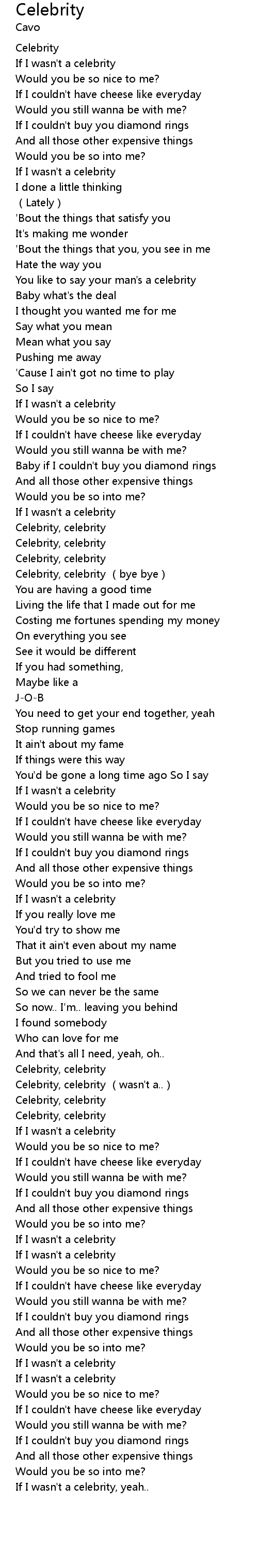 | [00:16.43] | If I wasn' t a celebrity |