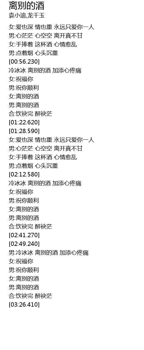 | [02:24.930] | 女:离别的酒 |