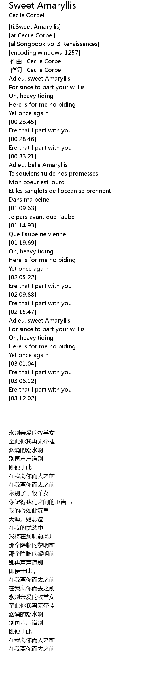 | [02:43.00] | Adieu, sweet Amaryllis |