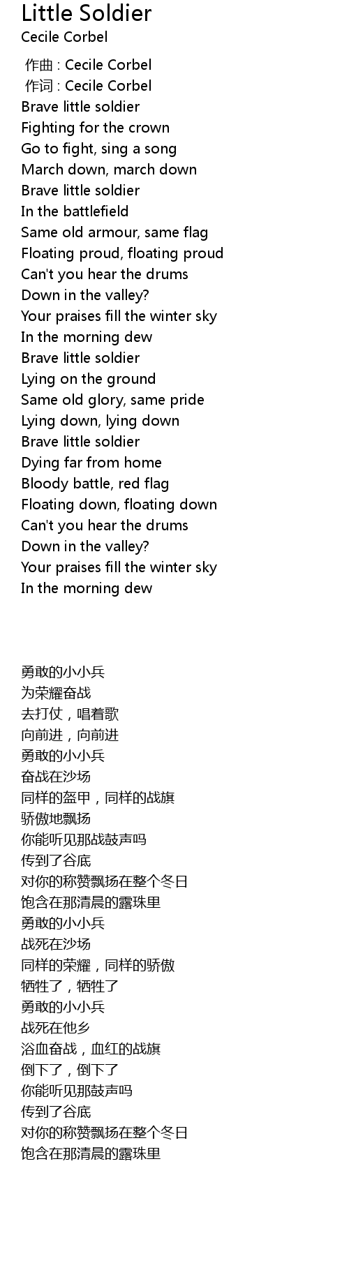 | [01:33.18] | Brave little soldier |