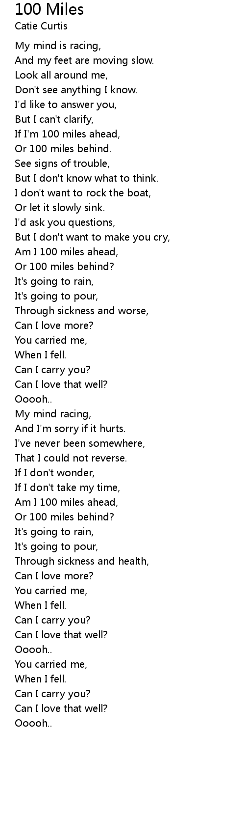 If I'm 100 miles ahead, |