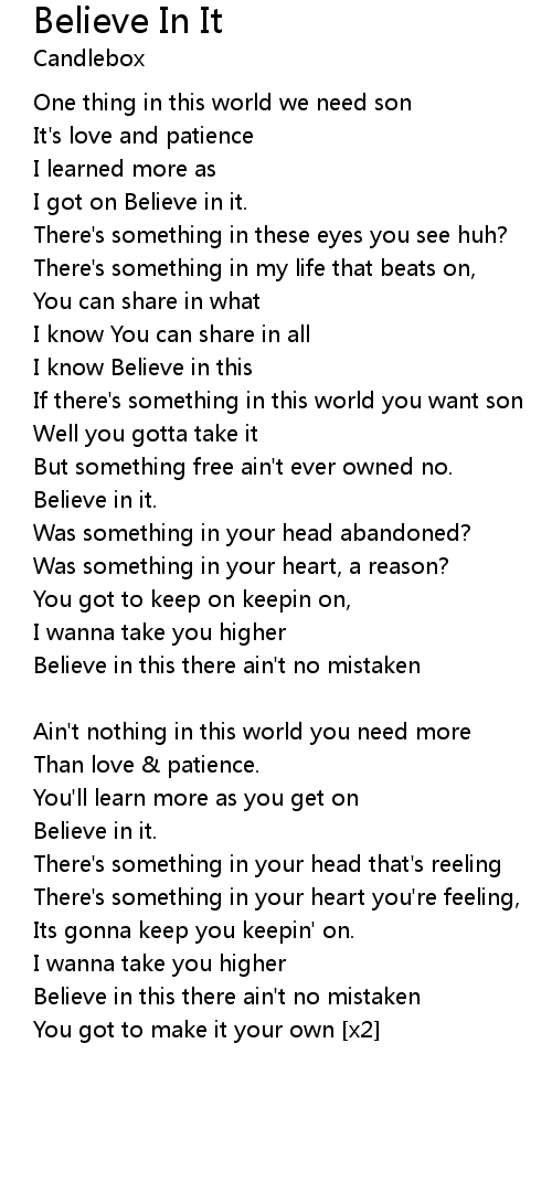 Believe in this there ain't no mistaken |