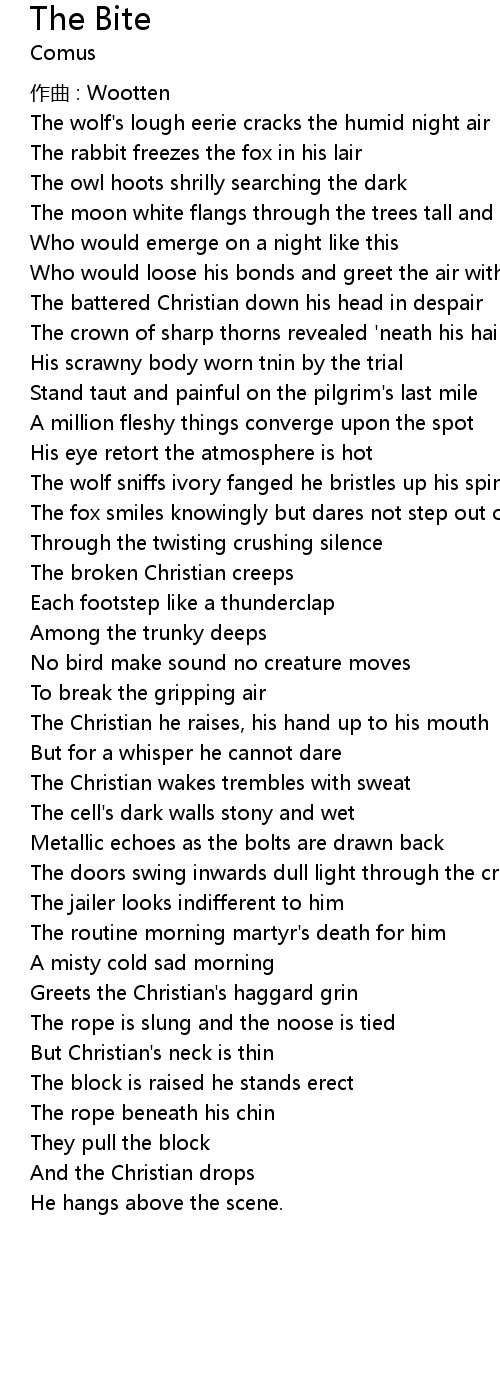 | The wolf sniffs ivory fanged he bristles up his spine | |