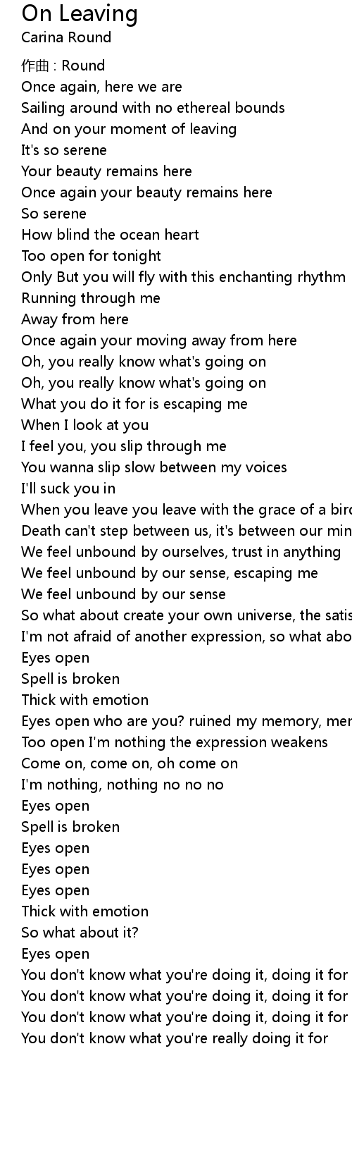 | And on your moment of leaving | |