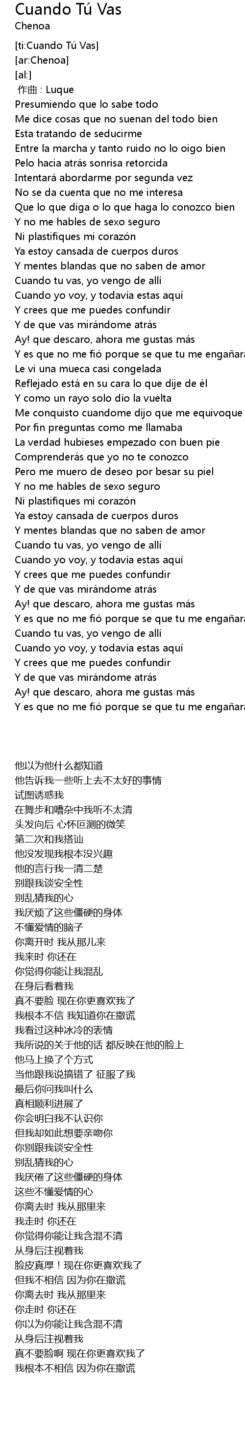 | [02:49.43] | Cuando tu vas, yo vengo de allí |