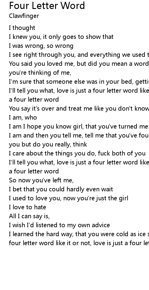 I'll tell you what, love is just a four letter word like it or not, love is just a four letter word |