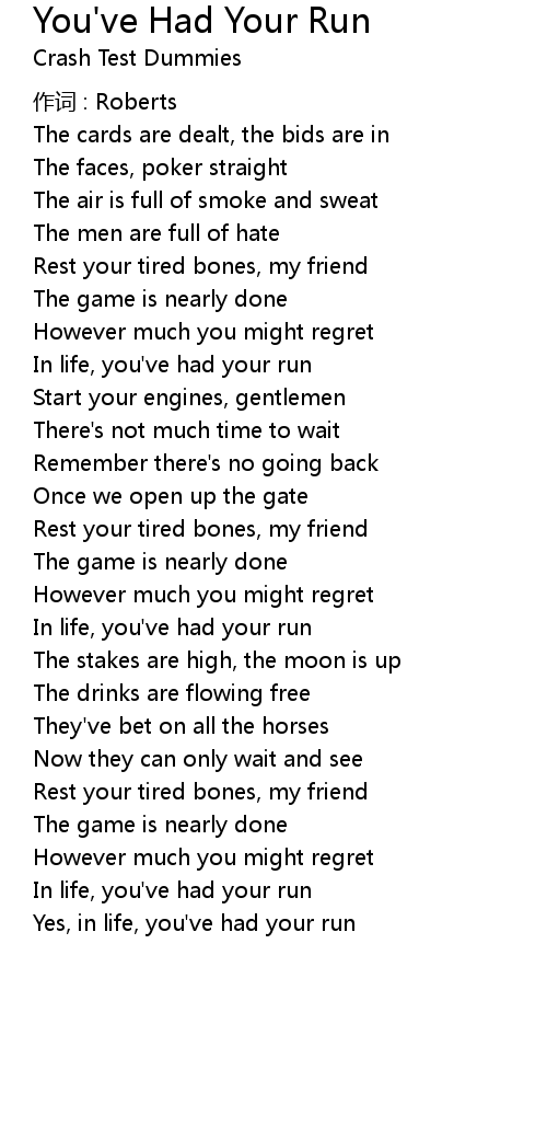 | In life, you' ve had your run | |